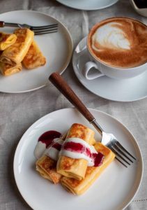 Bánh crepe có thể ăn nóng hoặc nguội với mứt, hoa quả tươi, kem hay kem tươi.