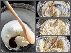 Cho toàn bộ nguyên liệu vào trong tô trộn lớn. Trộn đều hỗn hợp bằng phới đánh tay hoặc máy trộn.